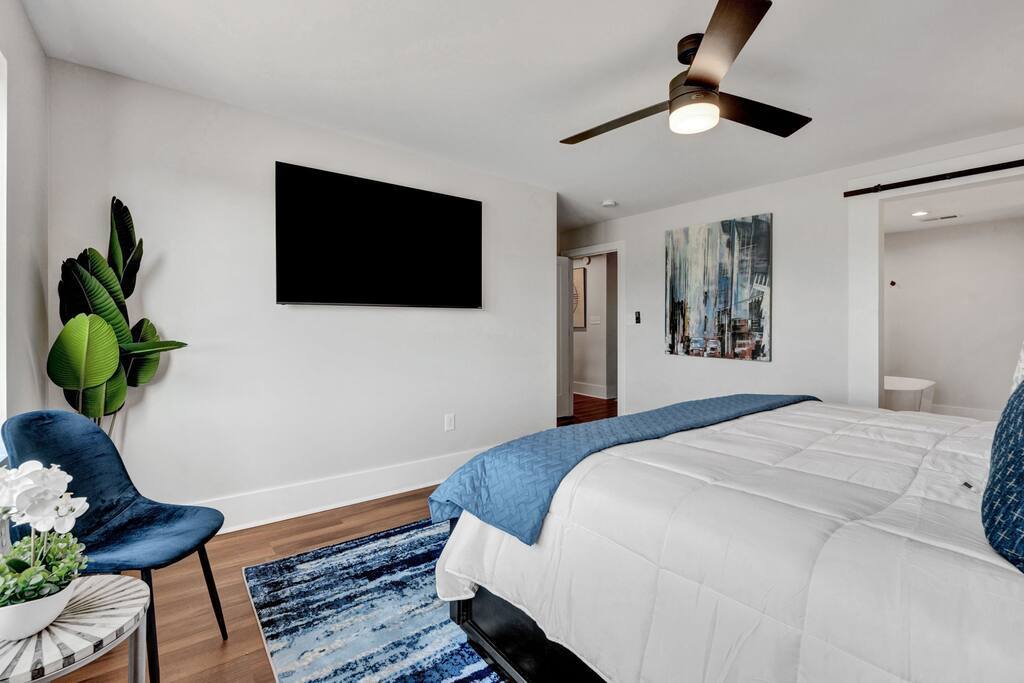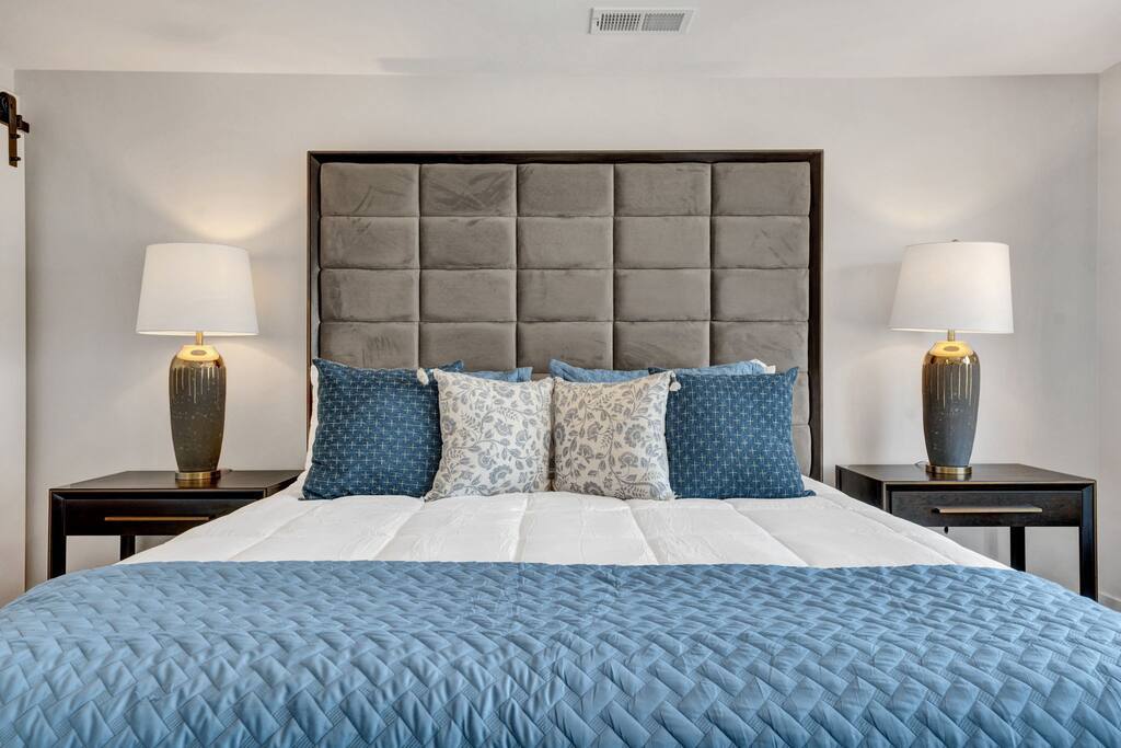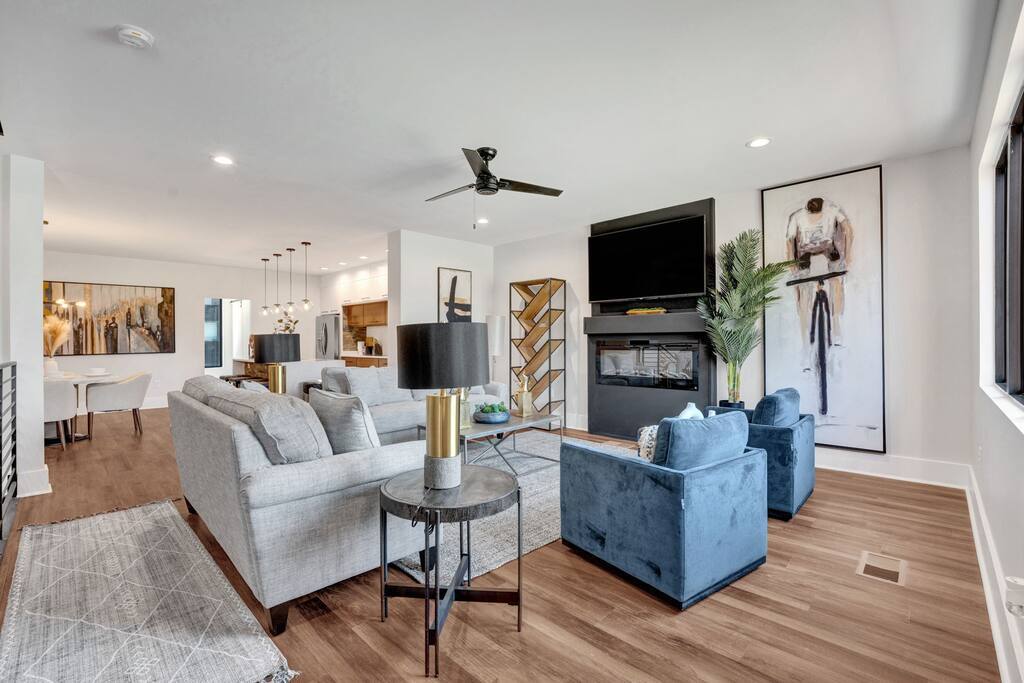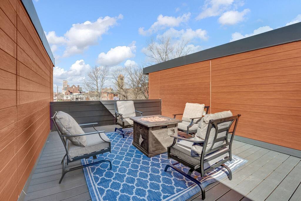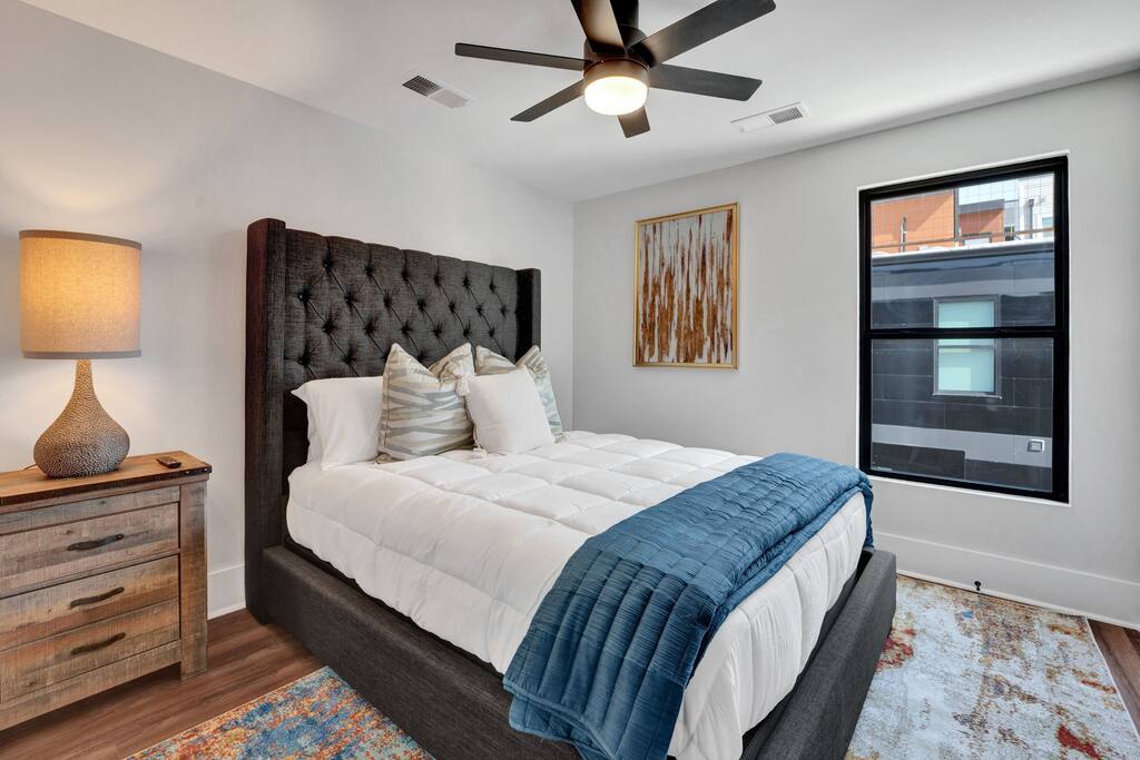 Beautiful luxury property in the center of Memphis, 5-min walk from Beale Street, the FedEx Forum, restaurants, and all the downtown entertainment you could want! Additionally, the condo offers a private rooftop sitting area with a fire pit for those cool Memphis nights, a minibar, and a conversation area with views of the FedEx Forum and the nearby nightlife.