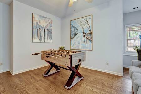 Make some memories at this distinctive and welcoming location in Memphis. It's the ideal getaway location for you and your family. three bedrooms, three bathrooms, and a jacuzzi tub, all elegantly decorated, sparkling, and fashionable. Spend time in the game room as well, which has a football table and an arcade with Street-fighter standup games. It is only a few blocks away from pubs, cafes, restaurants, and a wide variety of other leisure and entertainment options.